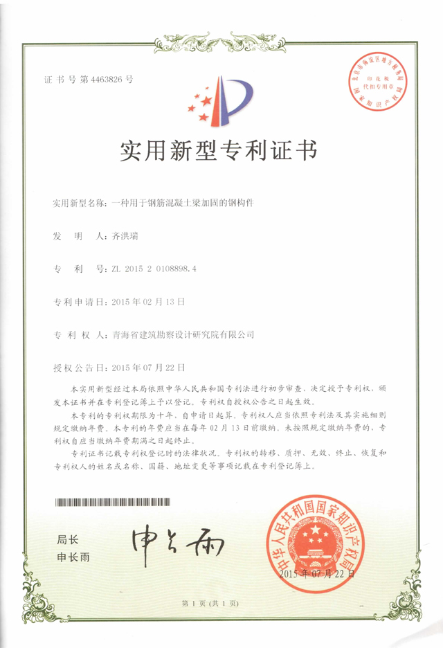 2015年度,我公司依靠行业科技人才的优势,加大研发力度,专利技术取得了显著成效。按照国家有关专利技术申报工作要求,共申报专利技术9项,经国家知识产权局核批,其中8项获得“实用新型专利证书”,这8项专利技术分别为: