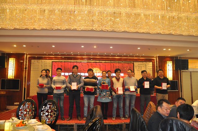 随后,公司监事会主席于俊江同志作了2015年度监事会工作报告;公司董事、副总经理宋放同志宣读2015年生产经营目标、管理责任制和项目管理责任制考核奖励决定;公司董事、党委书记沈波立同志宣读2015年度先进集体和先进个人的表彰决定;公司董事、总建筑师胡东祥同志通报2015年度省优、部优评审情况,并宣读省优、部优、院优表彰决定;公司董事、总会计师邹继青同志作了2015年度财务决算工作报告。之后,大会举行了颁奖仪式。公司领导分别为13个优秀集体、先进集体、优秀班组和先进班组,69名先进工作者和11名优秀管理者及获得院优工程的单位和个人颁了奖,并对成绩突出的生产部门,按要求予以奖励。