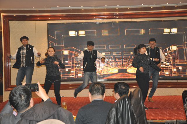 公司总结表彰会结束后,2016年迎春文艺演出闪亮登场。随着两位主持人华丽的开场词,“才艺达人”精心准备的歌曲、舞蹈节目为员工送上了新春的祝福。节目既突出了节俭大方的格调,又不失欢快热烈的气氛。现场不时爆出阵阵热烈的掌声。同时,在节目演出中还穿插抽奖活动,邀请公司各领导公开抽取幸运奖。演出精彩落幕后,公司党委书记沈波立致祝酒词。整个团拜会场面,灯火通明,热闹祥和,觥筹交错,祝语飞扬,董事长王力明等公司领导高举酒杯,沿桌为全体员工提前拜年。大家齐聚一起,共同庆祝2015年度取得的辉煌成绩,在笑语欢声中畅想着2016年的美好愿景。