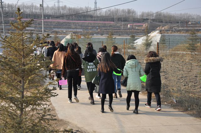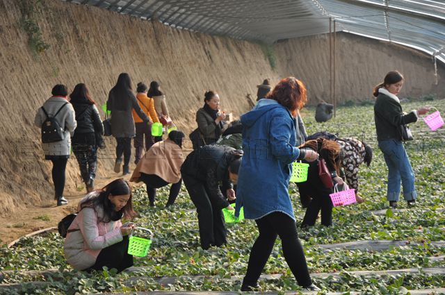 大巴车开进生态园大门,一下车,映入眼帘的是一派特色浓郁的乡土气息,一排排整齐的温室大棚格外引人注目。大家高高兴兴地集中在一起,公司党委书记沈波立和党办主任兼女工主任宋景娥分别说了采摘活动的主要事项,园摘工作人员交代了采摘过程中的操作程序,随后,带着全体女员工往采摘大棚走去。约200米的乡间小路,处处散发着乡土的气息,尽管乍暖还寒,空气中还浸袭着丝丝凉意,但大家的心一直洋溢着温暖的节日情调。大家迎着节日的朝阳,吮吸着少有的田间空气,一会儿功夫,几个外罩白塑料的温室大棚赫然出现在眼前,这就是先要采摘的草莓大棚。每个人拎上分发的塑料筐,弯腰进入温棚内。阳光透过塑料大棚,给本来就很潮热的大棚罩上了一层三亚之感,是呀!温棚因这样的温度而造就,从室外到棚内,刚刚还是寒袭的冬季,一下子像是被空运到海南岛似的。那凸凹有致的绿色田梗,星星点点的红红草莓躲藏在绿叶之中,零零散散的小白花陪伴着成熟的红。这诗意的红、绿、白,醉染着我们的身心,迫不及待的心拉下了忍不住的手,大家一会弯着,一会蹲着,累了站一会,马上又继续采摘……
