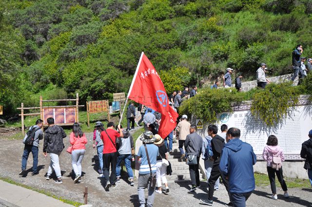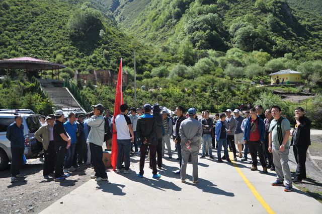 早上7:30,提前安排好的6辆景区大巴车准时等候在公司大门口,公司全体党员和员工按照指定的车号顺序上车,一路上,飞驰的车轮穿碧绿的田野、过崭新的城镇、越蜿蜒的山道,载着每个员工轻松和欢愉的心情奔向目的地。近3个小时的颠簸和期待,6辆大巴车终于于10时许陆续抵达察汗河景区。一下车,公司党委书记沈波立,公司副总经理、工会主席邹继青,公司党办主任宋景娥迅速集中全体人员。接着,沈波立书记在现场简单介绍了徒步活动中注意的安全事项及午餐安排等其他事宜,随着书记的一声“徒步活动现在开始”的指令,公司鲜艳的“LOGO”旗帜引领着全体员工向察汗河景区深山峡谷挺近。