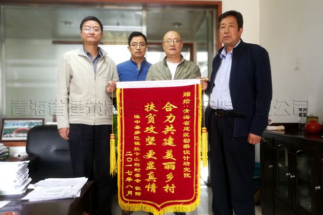 自今年6月份以来,在青海省住建厅统一协调和督导下,沈波立书记多次到联点帮扶村——拉卡山村和魏家堡村实地了解扶贫情况,与村干部一起谋划适合于本村脱贫致富的有效对策,通过走访和实地查看等,为二村脱贫提出了一些好的建设性意见。同时还为二村捐助了一定的扶贫资金。为感谢公司一年来对拉卡山村的热心帮扶,2017年9月1日,拉卡山村村主任等村干部送来一面锦旗,以表感激之情。公司党委书记沈波立和副总经理、工会主席邹继青一同接受了赠送的锦旗。