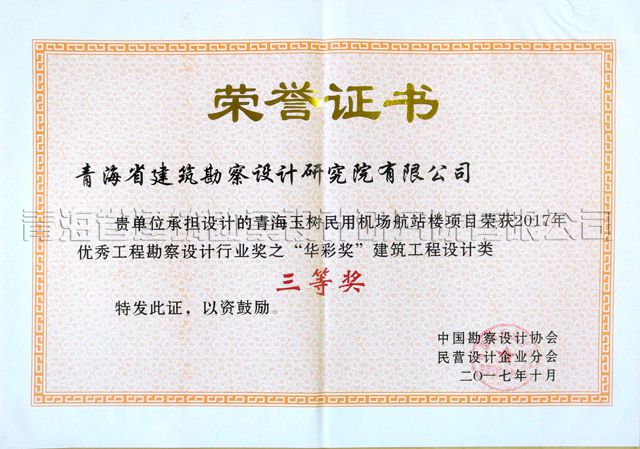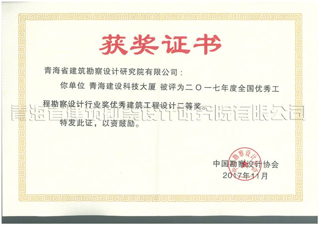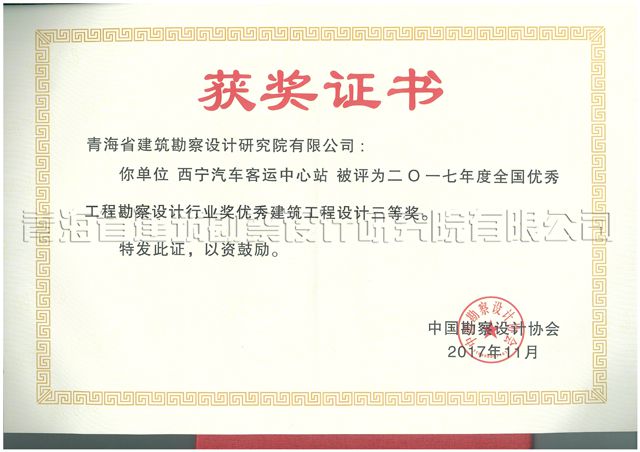2017年度国优大奖中,公司共摘得1个二等奖、2个三等奖,其中,以胡东祥总建筑师为主创的设计团队设计的青海建设科技大厦项目获二等奖,单翀辰所长为主创的设计团队设计的西宁汽车客运站项目获三等奖,吴昆所长为主创的设计团队设计的玉树机场航站楼项目获“华彩奖”三等奖,这是继2015年公司摘得全国优秀工程勘察设计行业奖3项大奖后的又一次新突破、新收获,这三项大奖的获得,既是对公司技术实力的高度肯定,又充分体现了公司团队的合作水平,必将对进一步提升公司作为省院的品牌知名度起到积极的作用。