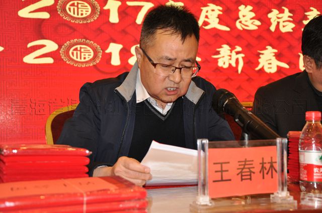 “金鸡报捷去,瑞犬迎春来”。2018年2月12日下午,公司2017年度总结表彰大会暨2018年新春团拜会在西宁大连海鲜钻石店举行。公司领导王力明、沈波立、宋放、胡东祥、邹继青、王春林,监事会主席于俊江在主席台上就坐,会议由公司副总经理王春林主持。