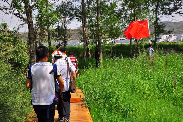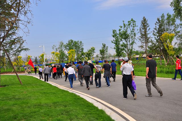 约一个小时的行程,三辆旅游大巴抵达徒步目的地,置身这里,呼吸着城市中少有的新鲜空气,看着远道而来的游客同家人朋友闲庭信步,骑自行车或乘坐景区观光车,沿着蜿蜒舒适的环形主路线,欣赏园内规划的几个生态观光功能区,惬意的心情怎能不油然而生,员工们迫不及待的赏景之心已喷张在嗓子眼。公司董事长王力明、党委书记沈波立和工会主席邹继青迅速动员大家,在中午就餐的饭店门前整齐列队,一起合影留念。随后,工会主席邹继青一声令下,公司领导和全体员工一同开始了这次迎“七一”徒步健身活动。