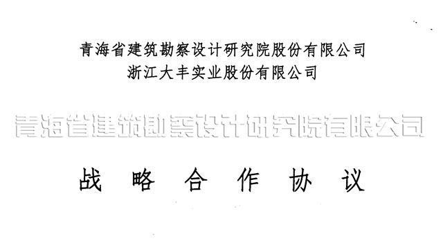 11月18日,受青海省院董事长、总经理王力明的委托,我院授权代表、党委书记沈波立与浙江大丰实业股份有限公司授权代表、经理孙涛签署了战略合作协议。