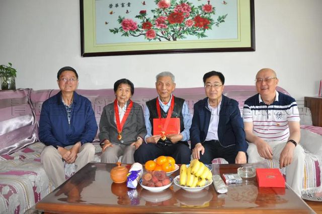 今年88岁的老党员崔丙辛,身患眼疾几十年,行动不便,但一直保持乐观向上的心态,他和老伴相互依靠,老伴是他的眼睛,他是老伴的精神寄托。崔丙辛老人晚年爱好诗文,他就口说,老伴或孩子代他写在纸上,就这样写了不少赞美生活的诗歌作品。师健副厅长一行来到他的家中慰问,代表省住建厅党组织为他佩戴“光荣在党50年纪念章”,并送上慰问金。崔丙辛老人激动地和师健副厅长及公司领导聊谈他现在的幸福生活,并拿出刚刚写好的诗文给领导们看。领导们被他执着、坚韧的党员品格深深感染,同时关切地询问他的身体健康、生活起居等情况,鼓励他保持良好心情,祝他生活一天比一天好。荣幸的是崔丙的老伴也获得“光荣在党50年”纪念章,领导们高兴地和老两口一起合影留念。